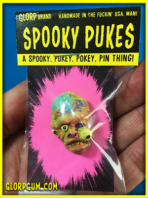 Blechnic is the second of 9 GLORP Spooky Pukes, a batch of handmade resin pins sculpted and produced right here at the world famous GLORP Gum factory in Minneapolis, MN.