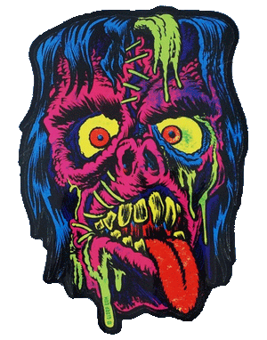 This stylishly garish ghoul was torn from the pages of the last ever issue of the infamous GLORP comic: SPOOKY WEIRD TALES OF TERROR! The legendary cursed comic #666 was said to be beset with bizarre deaths of over 30 artists and editors alike! Finally published after Italian blacklight poster artist (and alleged warlock) Filippo Abbandonato took control of the project in 1971, now we have taken the most famous portraits from the ALLEGEDLY cursed panels!