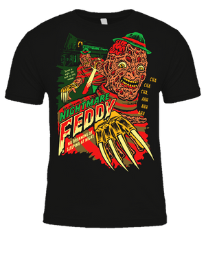 Oh sure, you could be a "basic bitch" and wear a wear your Sharp Hand Joe shirt to Starbucks for a pumpkin spice latte while you shop for stud bracelets and tongue rings at your local Hot Topic, OR you could be the number one mutherfucker on the bootleg block with this Nightmare Feddy tee!