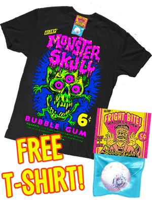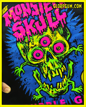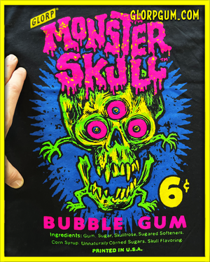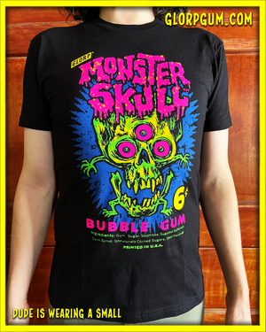 We ripped the art right off the box of monster skull bubble gum and tossed into the "shirt-u-lator" and voila! out came this beautiful neon masterpiece.