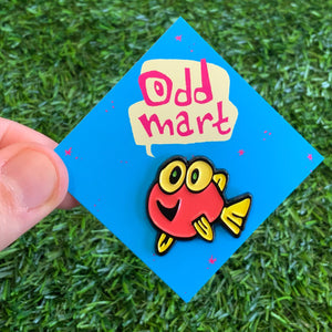 1” tall soft enamel black dye-plated lapel pin with 1 clutch post with rubber backer.