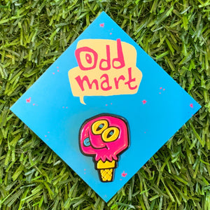 1” tall soft enamel black dye-plated lapel pin with 1 clutch post with rubber backer.