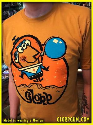 In 1969, man first faked the moon landing. Cut to now, and no one has faked chewing gum on the moon. What's up with that? I guess it's up to Glorp to bridge that gap in logic. Unlike our space program, shirt and gum is 100% real and useful.