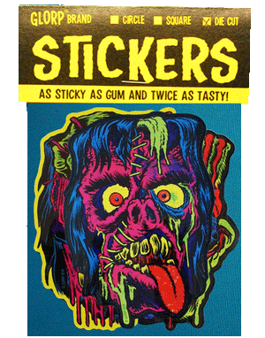 These sensasonally salacious stickers were torn from the pages of the last ever issue of the infamous GLORP comic: SPOOKILY WEIRD TALES OF TERROR! The legendary cursed comic #666 was said to be beset with bizarre deaths of over 30 artists and editors alike! Finally published after Italian blacklight poster artist (and alleged warlock) Filippo Abbandonato took control of the project in 1971, now we have taken the most famous portraits from the ALLEGEDLY cursed panels!